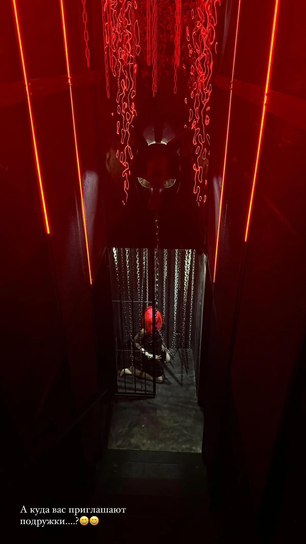 Як можна зрозуміти зі Stories білявки в Instagram, вона відвідала київський бар для дорослих. Заклад сповнений предметами, які створюють сексуальну атмосферу.
