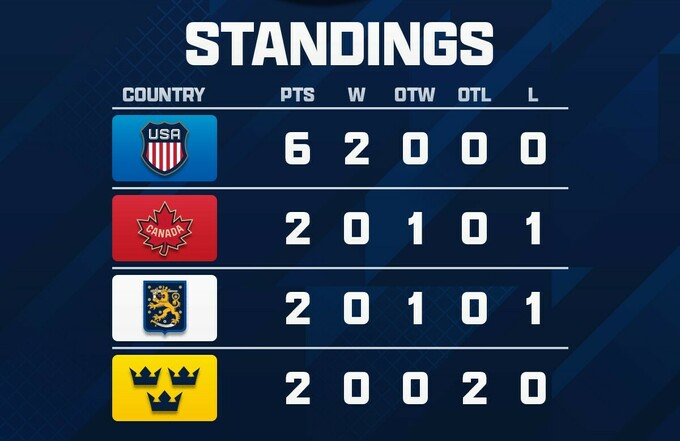 Перед останнім туром збірна США набрала 6 очок та гарантувала собі фінал. А от Канада, Швеція та Фінляндія мають по два пункти.
