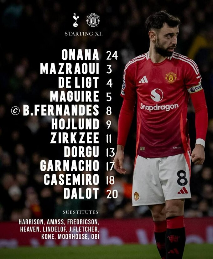 «Манчестер Юнайтед»: Онана, Де Лігт, Магуайр, Мазраві, Доргу, Каземіро, Фернандеш, Далот, Зіркзе, Гарначо, Гейлунн.