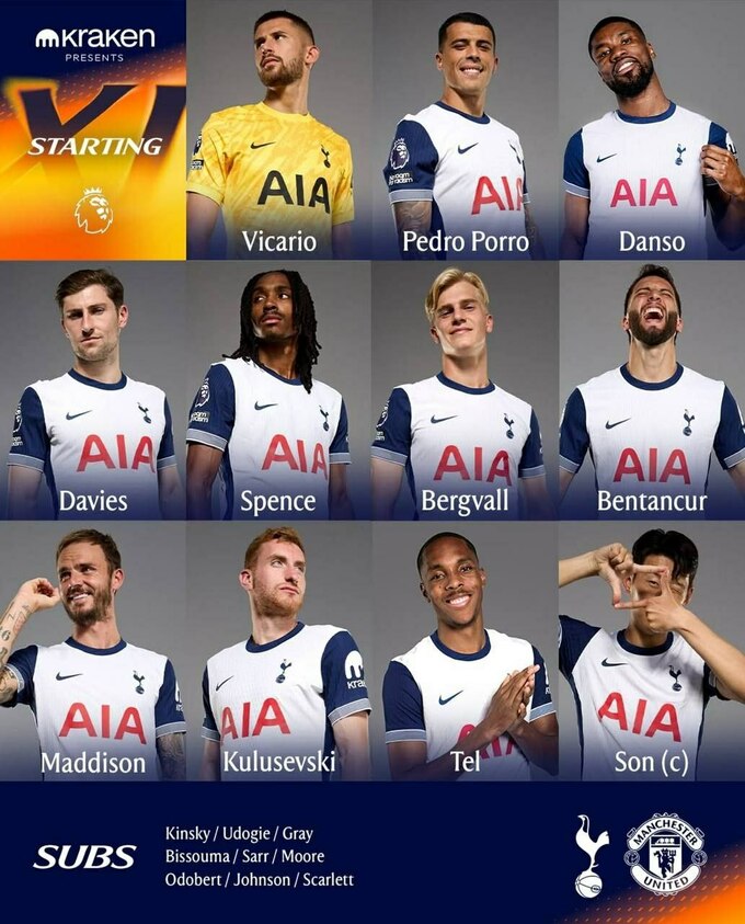 «Тоттенхем»: Вікаріо, Порро, Данзо, Девіс, Спенс, Бергвалль, Бентанкур, Кулусевскі, Меддісон, Сон, Тель.