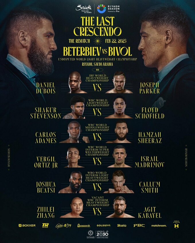 Увечері, 22 лютого, на арені «Kingdom Arena» у Ер-Ріяді (Саудівська Аравія) відбудеться великий вечір боксу, організований Туркі Аль-Шейхом.