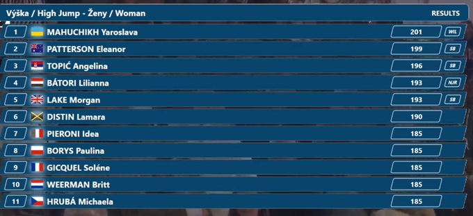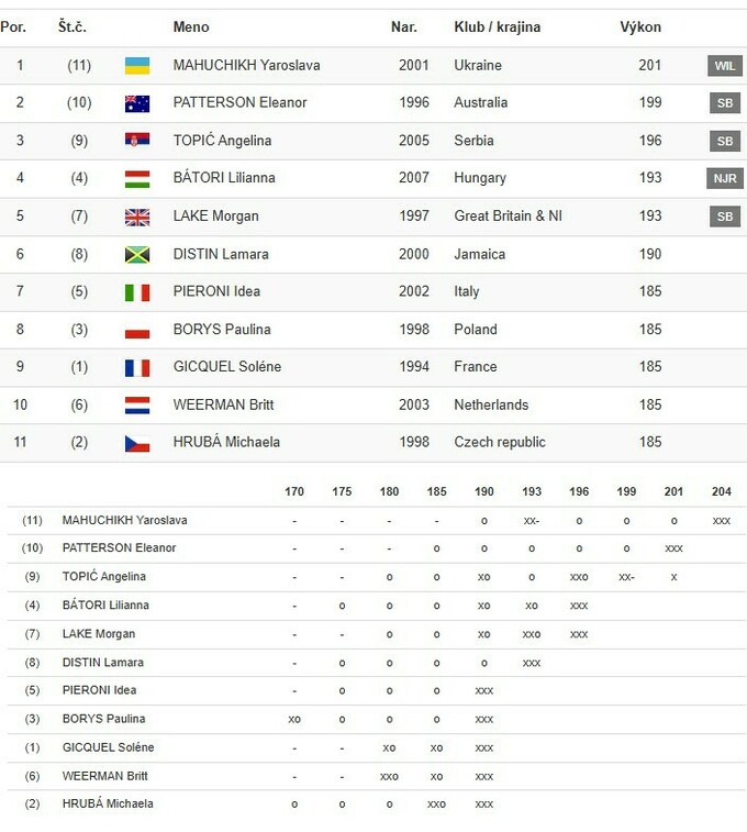 Конкуренцію їй склали австралійка Елеанор Паттерсон (1.99 м) та Ангеліна Топич із Сербії (1.96 м), які також увійшли до топ-трійки.