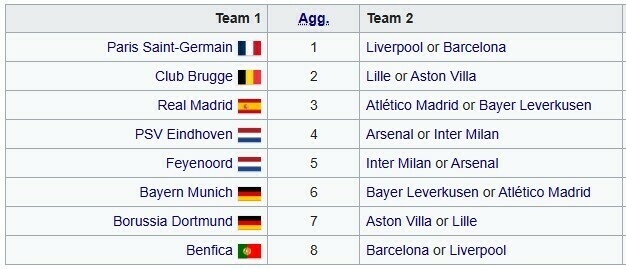 - ПСВ Ейндховен (Нідерланди) – Арсенал (Англія) / Інтер (Італія)
