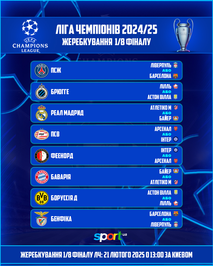 Визначено учасників 1/8 фіналу Ліги чемпіонів. Хто на кого може потрапити?