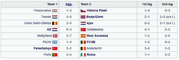 - 19:45. Буде-Глімт (Норвегія) – Твенте (Нідерланди) – 5:2 д.ч. (перший матч – 1:2)