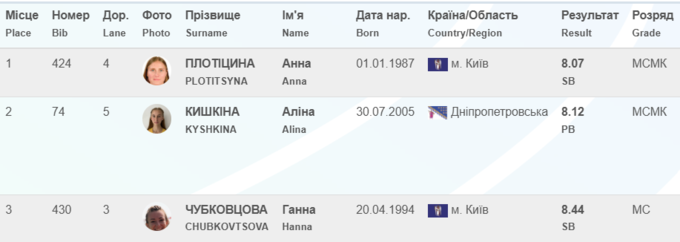 - Анна Плотіцина (м. Київ) – 8.07 с