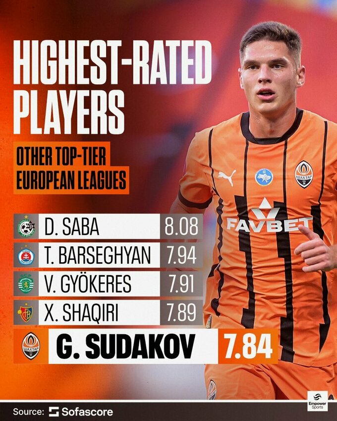 Судаков – у п'ятірці найкращих гравців Європи поза топовими чемпіонатами