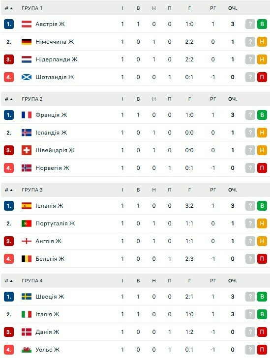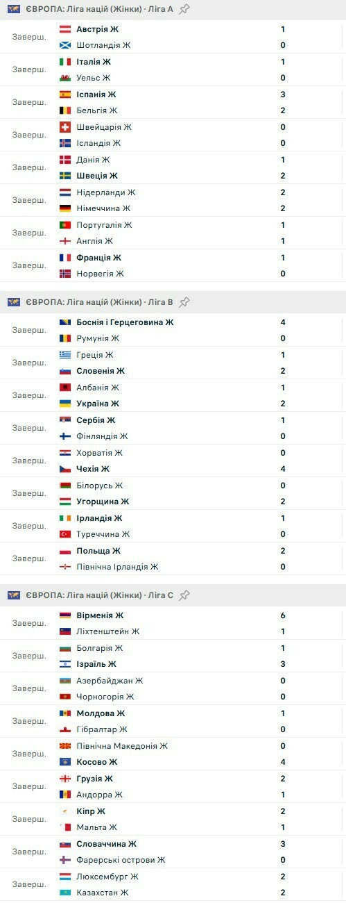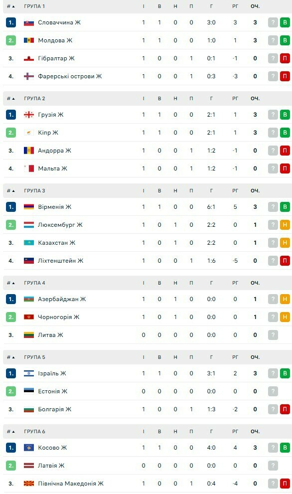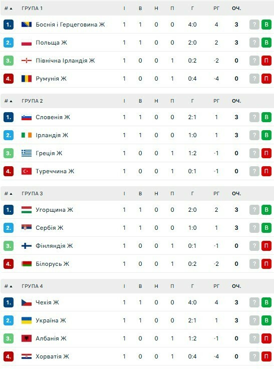 Підсумки 1 туру жіночої Ліги націй. Збірна України посідає 2-ге місце