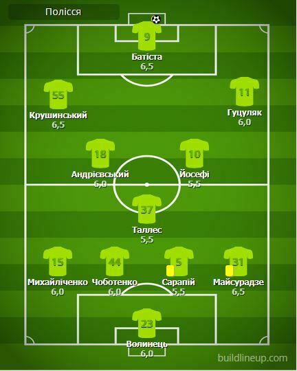 Заміни «Полісся»: Назаренко – 6,5; Лєднєв – 5,5; Мельниченко – 5,5; Гонсалвеш – б/о; Пайшао – б/о.