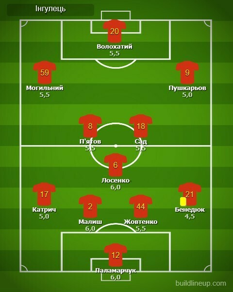 Заміни «Інгульця»: Фарасєєнко – б/о; Кисленко – б/о; Гаджук – б/о; Сидоренко – б/о; Скороход – б/о.
