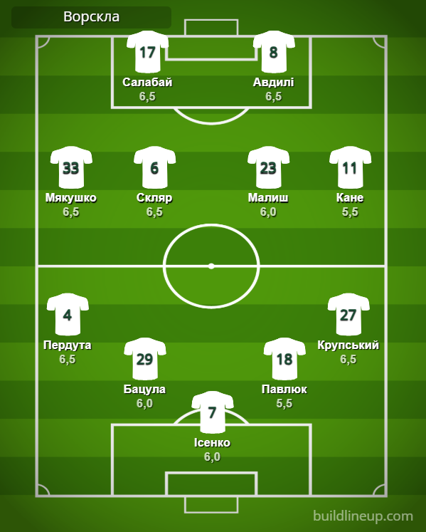 «Ворскла» (заміни): Нестеренко – 6,0, Ндукве – 6,5, Кулач – 6,5, Ієде – б/о.