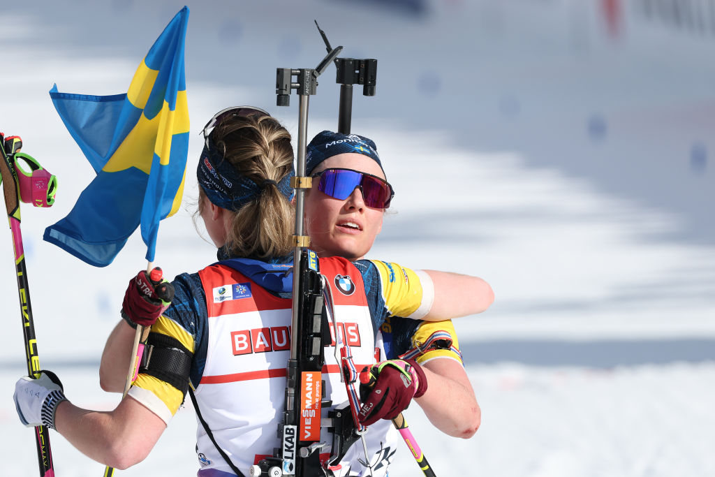 Отже, тріумфаторка гонки Ельвіра Еберг вперше стала чемпіонкою світу в тій дисципліні, де цього сезону перемагала двічі. Вона на фініші довго чекала на свою старшу сестру, щоб відсвяткувати перемогу разом із нею. В Еберг-старшої гонка сьогодні склалася вкрай невдало. Маючи аж 9 (!) хиб, вона йшла останньою. Однак це не завадило їй узяти до рук шведський прапор і відсвяткувати досягнення своєї сестри разом із нею на фініші.