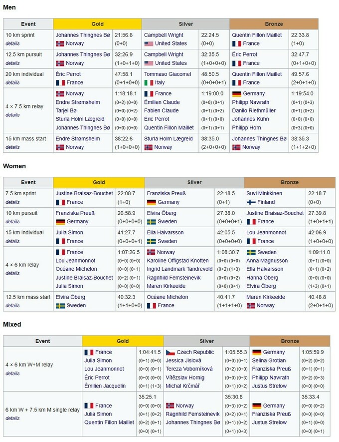 Франція, Норвегія та Швеція. Підсумковий медальний залік ЧС-2025 з біатлону