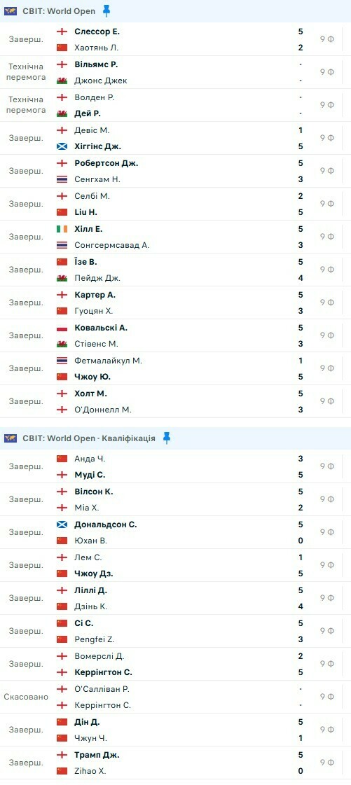 Снукерний рейтинговий турнір 2025 World Open стартував у китайському Юйшані.