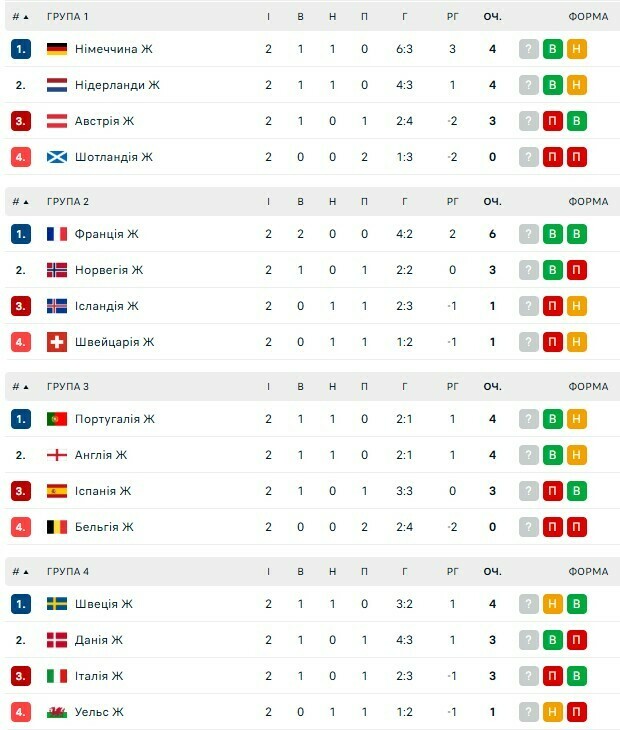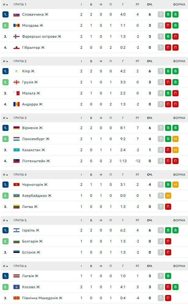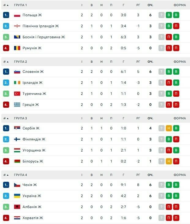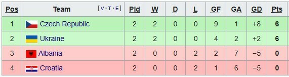 У групі лідирує Чехія (6 очок), Україна набрала стільки ж і йде другою, без набраних балів – Хорватія та Албанія.