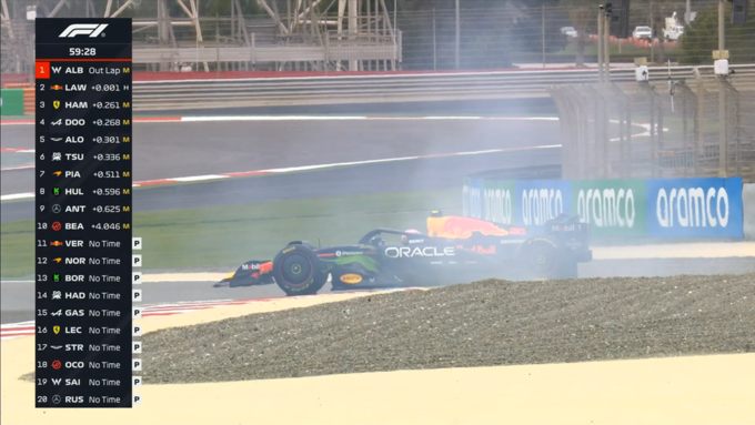На ранковій сесії відзначимо лише розворот новачка Ред Булла Ліама Лоусона, який в одному моменті не впорався з керуванням.