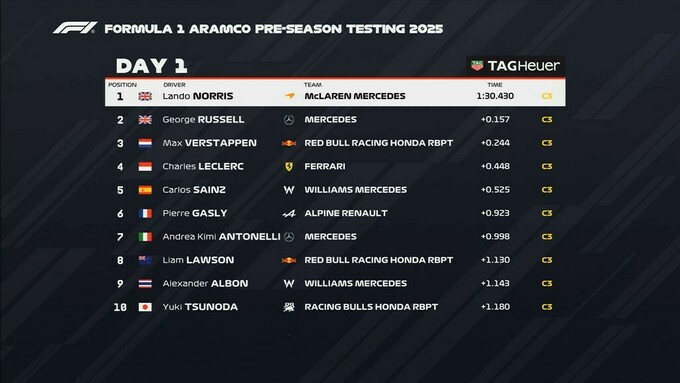 Час кола зараз не має великого значення, але першого дня за підсумками двох сесій найшвидшим на трасі був пілот Макларена Ландо Норріс, який випередив Джорджа Расселла і Макса Ферстаппена.