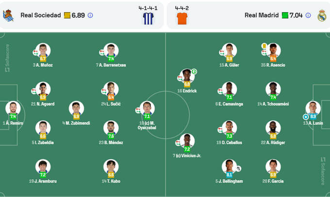 Оцінки матчу «Реал» Сосьєдад – «Реал» Мадрид від SofaScore