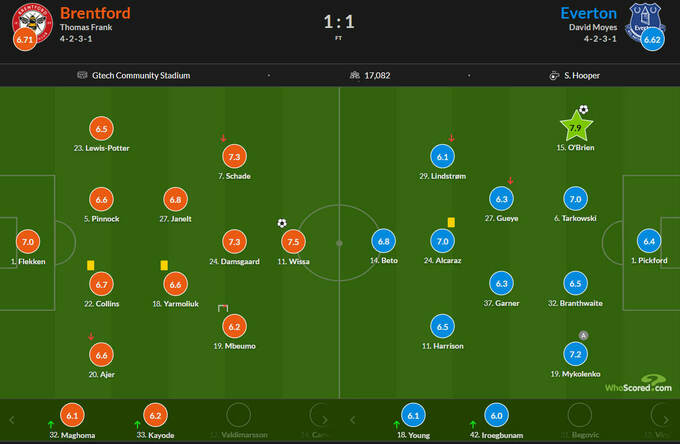 Оцінки матчу «Евертон» – «Брентфорд» від WhoScored