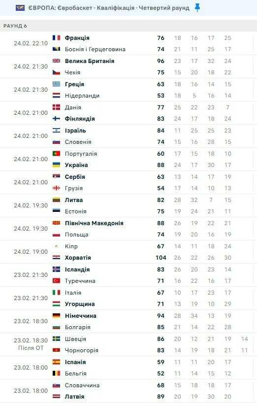 Чоловіча збірна України здобула перемогу на виїзді над Португалією з рахунком 88:60 в останньому матчі відбору на чемпіонат Європи 2025 з баскетболу.