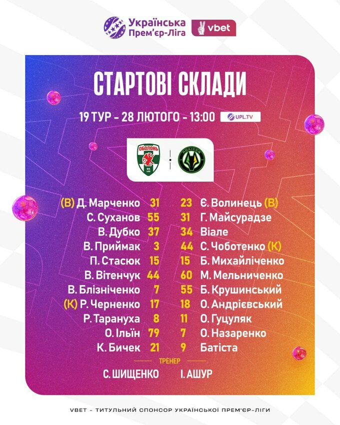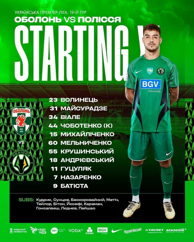 Оболонь – Полісся. Стали відомі стартові склади на гру