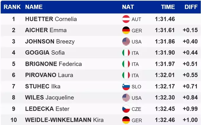 Зіркові лижниці Софья Годжа та Федеріка Бріньоне фінішували поруч з топ-3, продемонструвавши четвертий та п'ятий результати відповідно.