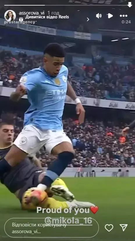 Дружина захисника «Евертона» Віталія Миколенка, Вікторія, поділилася особливим відео в Instagram, висловивши гордість за чоловіка.