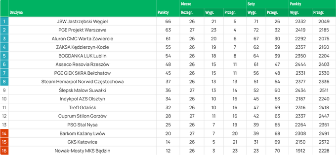 Актуальна таблиця Плюс-Ліги