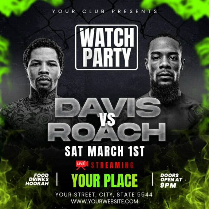 Пряма трансляція вечора боксу розпочнеться 2 березня о 03:00, Девіс та Роуч вийдуть на ринг орієнтовно о 05:00 за київським часом.