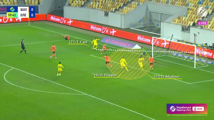 Отже, 59-та хвилина дала «Олександрії» шанс вийти уперед та, можливо, згодом зачепитися за перемогу. Зимовий новачок команди Ротаня албанець Теді Цара отримав м'яч на лівому фланзі, обіграв один в один Вінісіуса Тобіаса і, увійшовши до штрафного майданчика суперника, отримав можливість обирати: бити з гострого кута, викручуючи м'яч у дальню «дев'ятку», або ж прострілювати/навішувати в центральну зону.