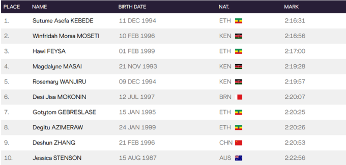 У жіночій гонці перемогу здобула ефіопка Сутуме Асефа Кебеде, яка захистила титул переможниці марафону у Токіо.