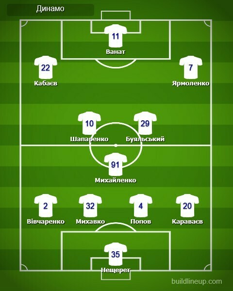 «Динамо»: Нещерет, Вівчаренко, Михавко, Попов, Караваєв, Михайленко (Бражко, 71), Шапаренко (Рубчинський, 85), Кабаєв, Буяльський (Піхальонок, 71), Ванат, Ярмоленко (Герреро, 71)