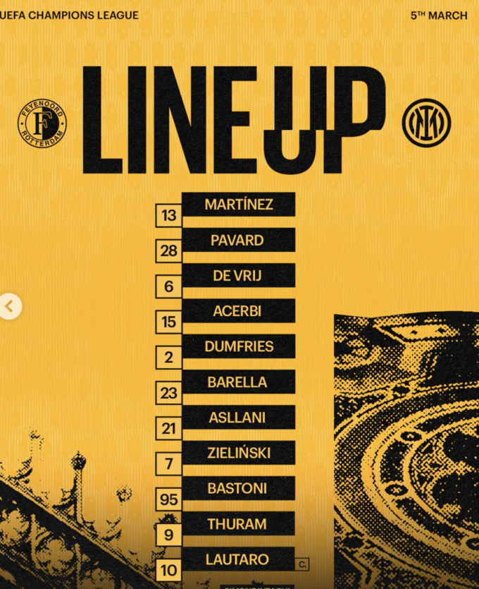 У середу, 5 березня, відбудеться перший матч 1/8 фіналу Ліги чемпіонів 2024/25 між командами «Феєнорд» та «Інтер».