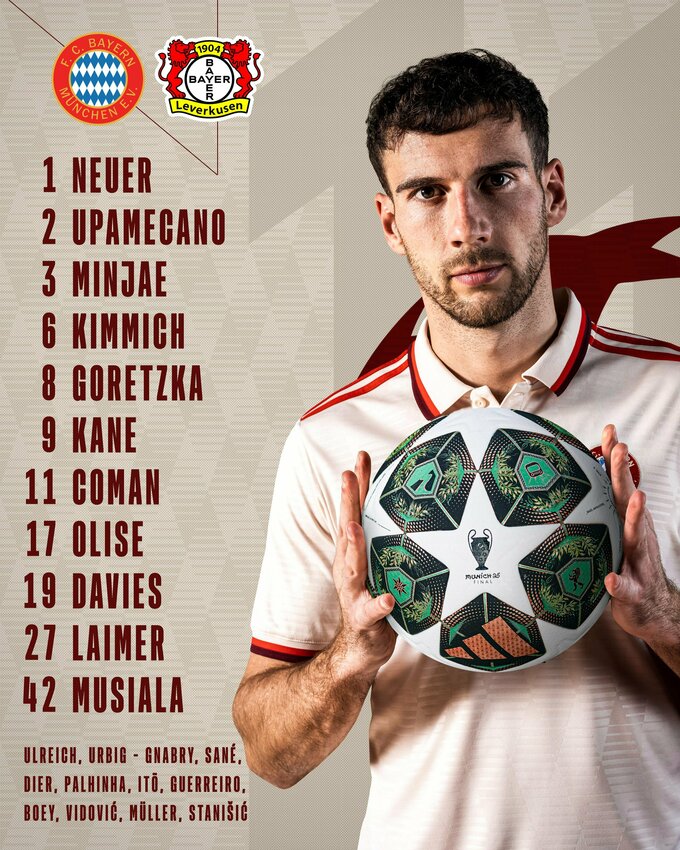 «Баварія»: Нойєр, Упамекано, Кім, Ляймер, Девіс, Кімміх, Горетцка, Коман, Мусіала, Олісе, Кейн.