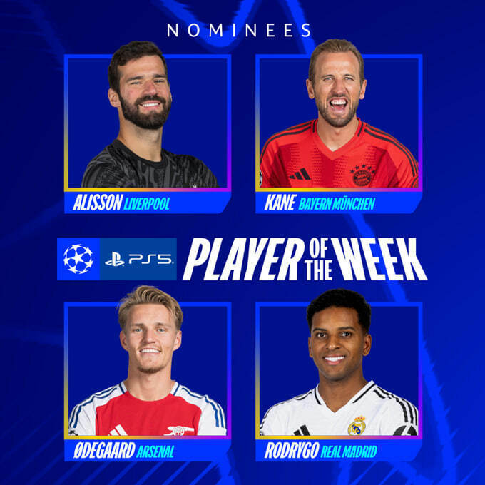 Чотири претенденти: Аліссон, Гаррі Кейн, Мартін Едегор та Родріго
