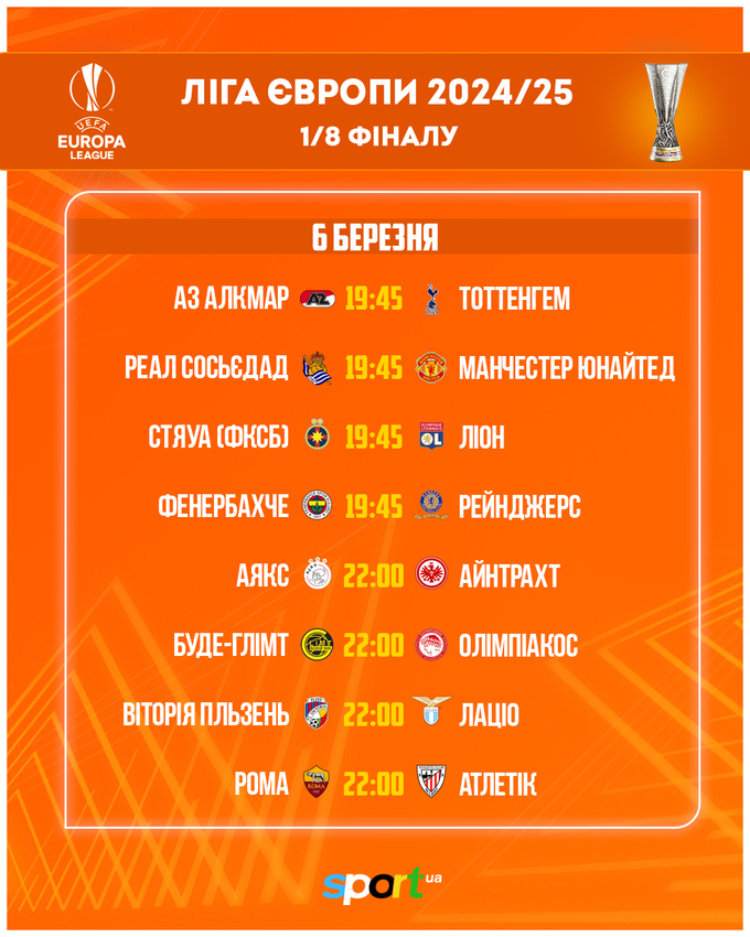 ⚽️ Ліга Європи. 1/8 фіналу. Перші матчі, 6 березня