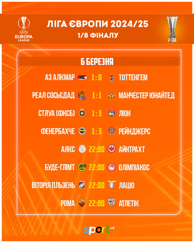 ⚽️ Ліга Європи. 1/8 фіналу. Перші матчі, 6 березня