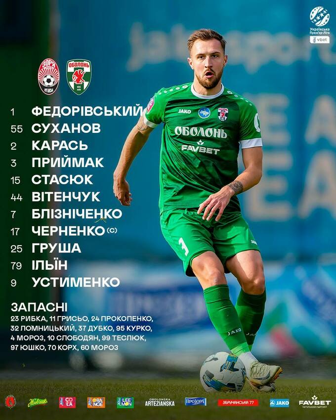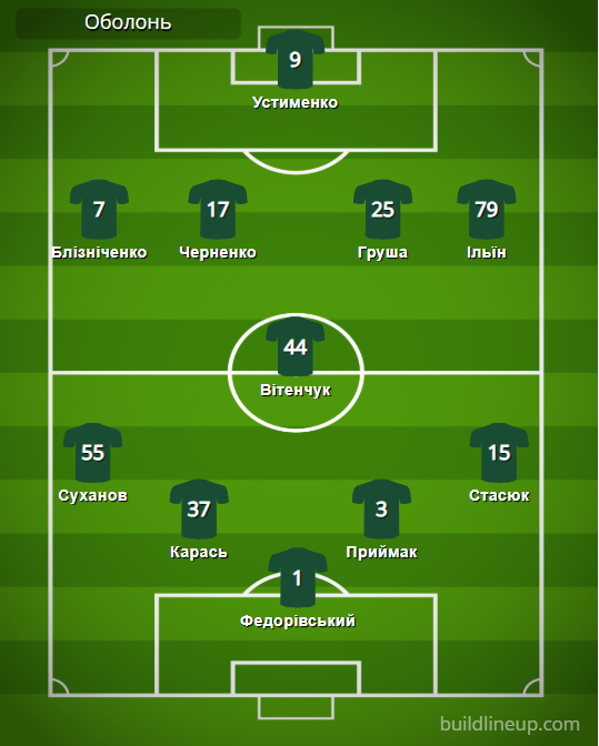 «Оболонь»: Федорівський – Суханов, Карась, Приймак, Стасюк – Вітенчук – Блізніченко (Прокопенко, 64), Черненко (Ломницький, 78), Груша (Теслюк, 87), Ільїн – Устименко.