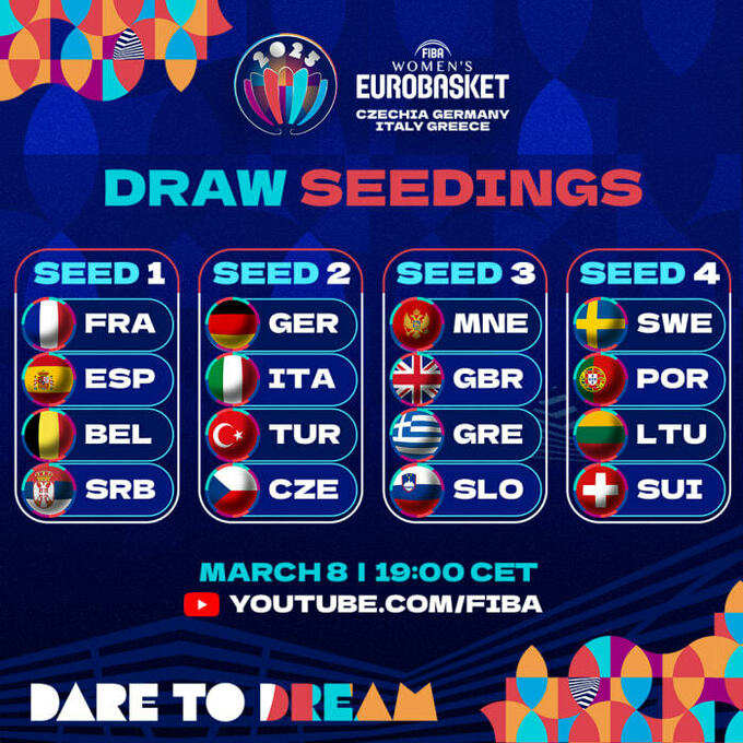 FIBA проводить жеребкування чемпіонату Європи 2025 з баскетболу серед жінок.