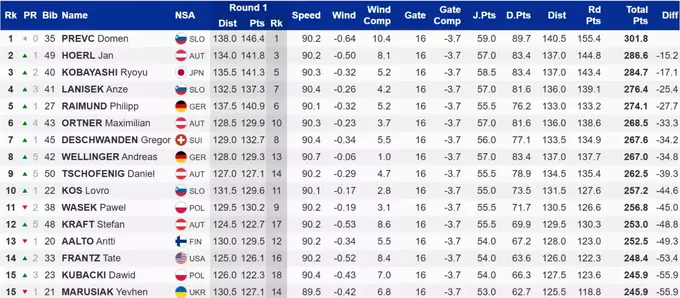Золотим призером турніру став представник Словенії Домен Превц, який завершив змагання, маючи в активі 301.8 бали. За ним розташувався учасник з Австрії Ян Хьорль, що програв в 15.2 бали. Трійку замкнув японець Рьою Кобаясі.
