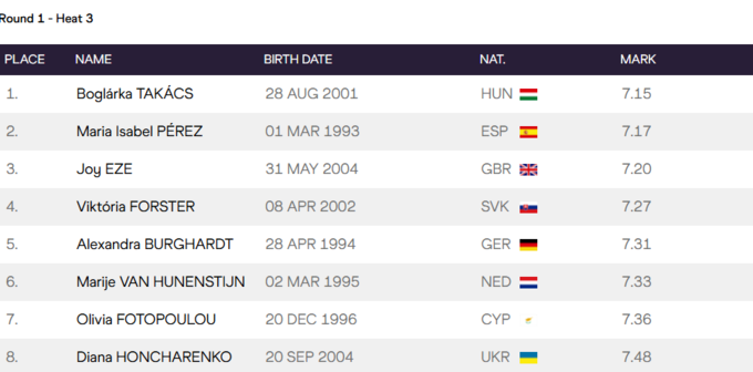 Українка посіла 8 місце у своєму забігу, показавши результат 7.48 секунд, вибувши зі змагань.