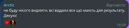 Arctic: не буду нікого виділяти, всі віддали все що мають для результату. Дякую!