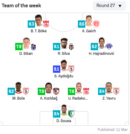 Український форвард «Трабзонспора» Данило Сікан потрапив до символічної збірної 27-го туру чемпіонату Туреччини, де його команда мінімально поступилась Хатайспору (1:2).