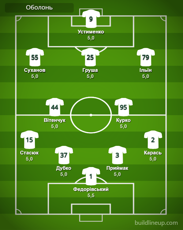 «Оболонь»: Федорівський – Стасюк, Дубко, Приймак, Карась (Грисьо, 59) – Вітенчук (Мороз, 59), Курко (Ломницький, 80) – Суханов (Теслюк, 75), Груша, Блізніченко (Прокопенко, 59) – Устименко.