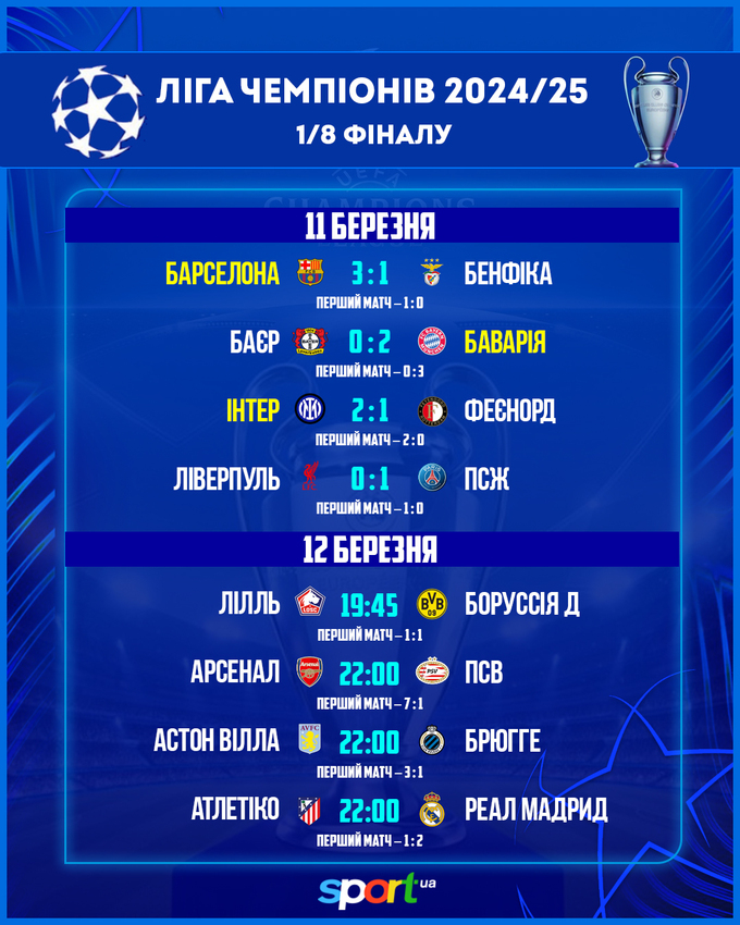 11 березня о 22:00 проходить матч-відповідь 1/8 фіналу Ліги чемпіонів.