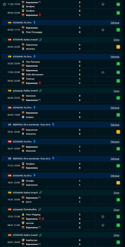 - Бенфіка (Ліга чемпіонів) – 1:0 (Г)
