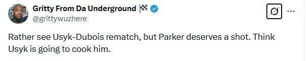 Gritty From Da Underground: Краще побачити реванш Усик – Дюбуа, але Паркер заслуговує на шанс. Думаю, Усик збирається його приготувати.