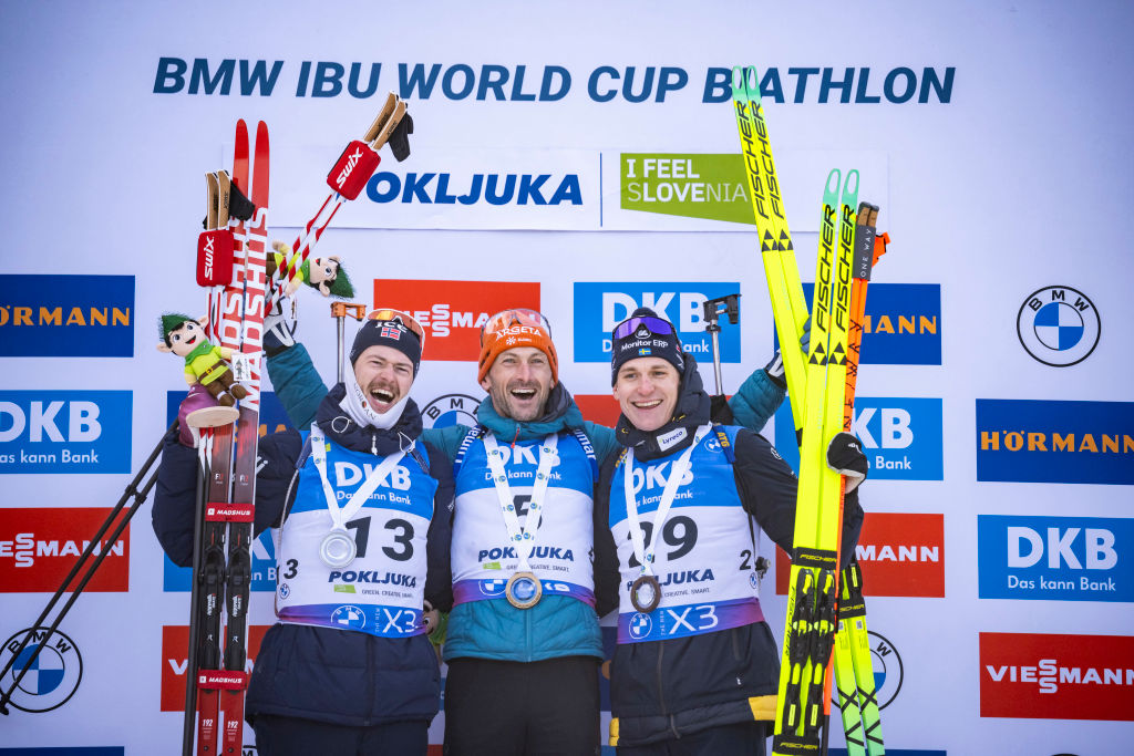 Ну, а тріумфував вельми несподівано досвідчений словенець Яков Фак. Він упродовж сезону демонструє непоганий відсоток влучності, проте зі швидкістю трапляються відчутні проблеми. Однак неодноразово упродовж сезону Фак був у ТОП-6. Тож сьогодні він зумів поєднати й стрільбу, й швидкість. Можливо, погодні умови та ранній стартовий номер цьому посприяли. Однак словенець святкує цілком заслужену перемогу: 9-ту в кар’єрі й першу від 2015 року. Й ба більше: словенець здобув золоту медаль у себе вдома, на рідному стадіоні, й перед рідною публікою.