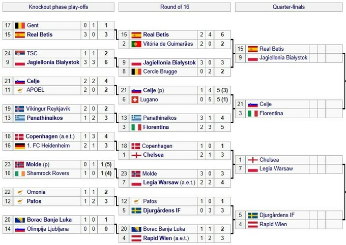 Бетіс – Ягеллонія, Целє – Фіорентина, Легія – Челсі, Юргорден – Рапід