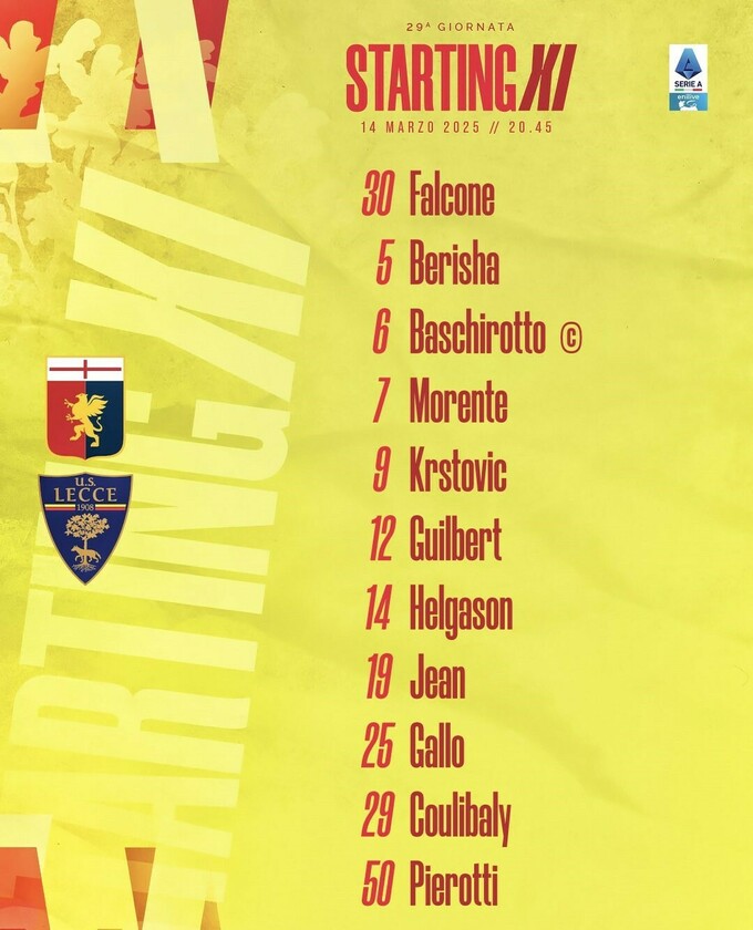 14 березня в межах 29-го туру Серії А буде проведено поєдинок між клубами «Дженоа» та «Лечче».
